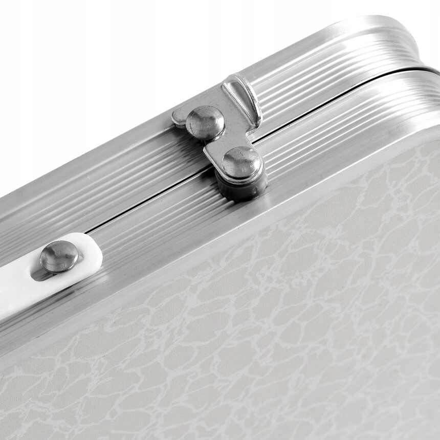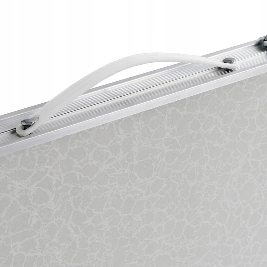 Aluminium folding tableITEM:LT-60A Material:Aluminium+MDF plate Overall size:60*40*26cm Table top thickness:4cm Tube size:13*0.8mm N.W:1.2kg G.W:1.5kg 20GP:3390pcs 40HQ:8230pcs