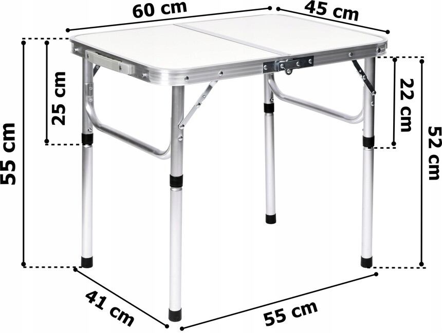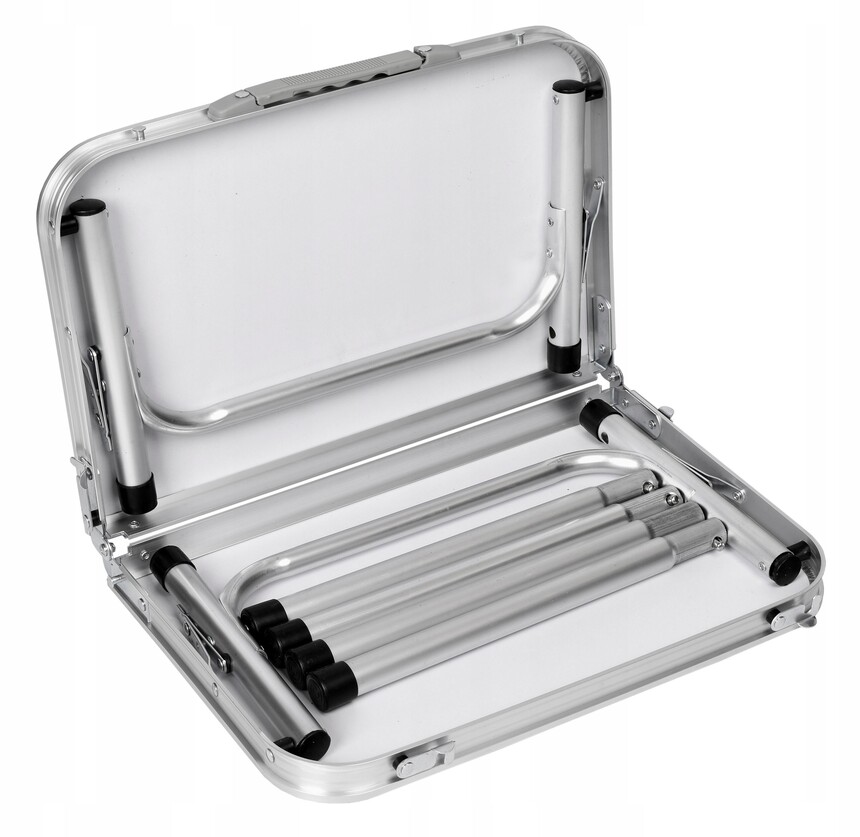 Aluminium folding tableITEM:LT-60B Material:Aluminium+MDF coated plate Overall size:60*45*25/56cm Table top thickness:4.5cm Tube size:25*0.7mm/19*0.8mm N.W:2kg G.W:2.5kg 20GP:2585pcs 40HQ:6280pcs