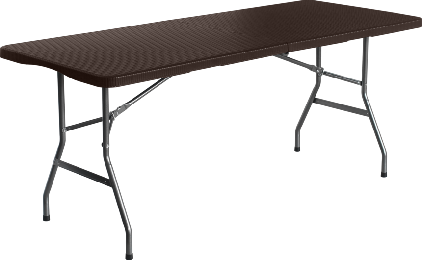 6FT rattan plastic folding tableITEM:LT-180R Material:HDPE tabletop and powder coated steel frame Overall size:180*74*74cm Table top thickness:3.8cm Tube size:25*1mm N.W:11kg G.W:11.5kg 20GP:510pcs 40HQ:1240pcs