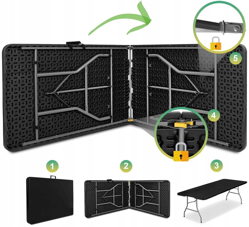 8FT plastic folding tableITEM:LT-240 Material:HDPE tabletop and powder coated steel frame Overall size:240*74*74cm Table top thickness:3.8cm Tube size:25*1mm N.W:16kg G.W:17kg 20GP:390pcs 40HQ:920pcs