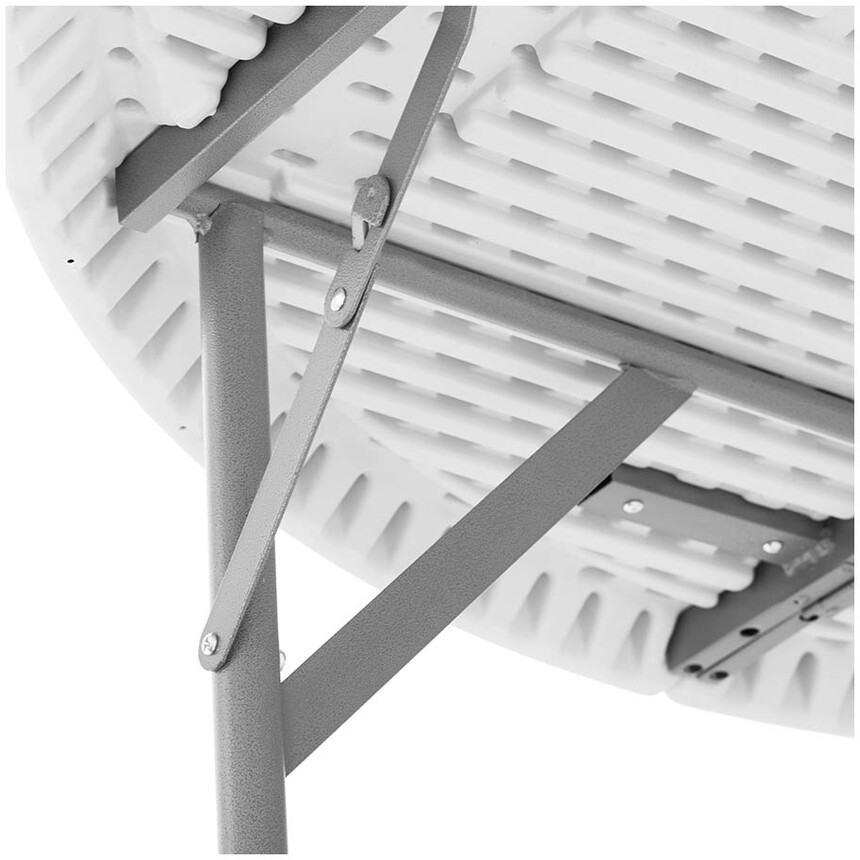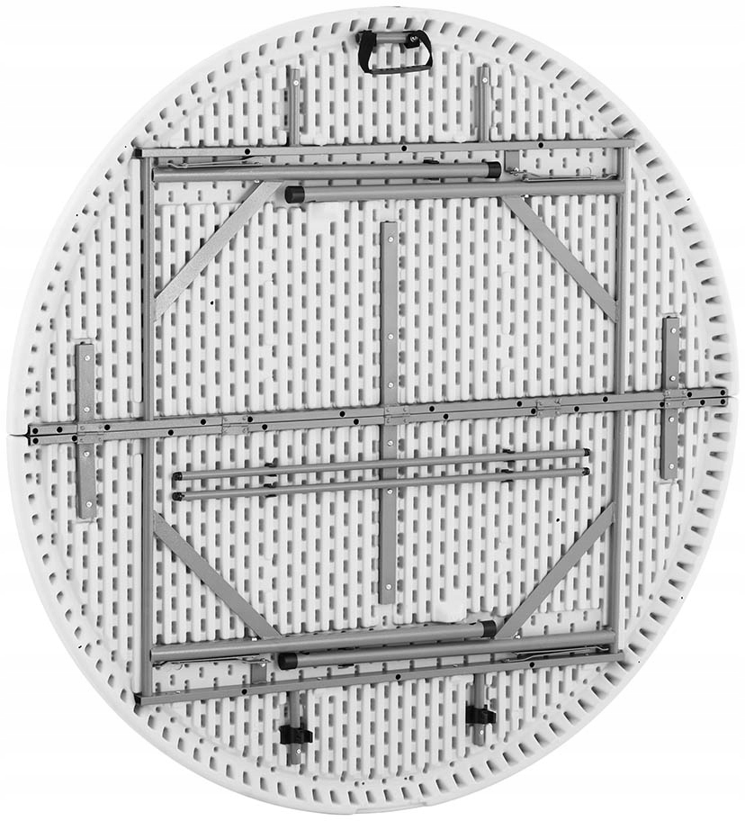 150cm plastic folding round tableITEM:LT-R150 Material:HDPE tabletop and powder coated steel frame Overall size:Φ150*74cm Tube size:28*1mm N.W:16kg G.W:18kg 20GP:250pcs 40HQ:565pcs