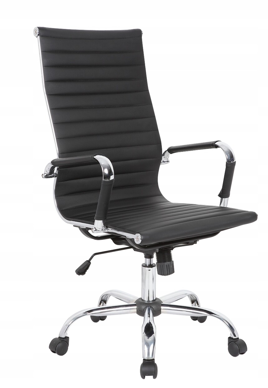 Office chair(black)ITEM:LT-OC003 Material:PVC+Foams+Nylon+Steel Characteristics:Height adjustable seat Measurements:60*60*104.5-112.5cm Maximum weight:150kg G.W:8.9kg 40HQ:660pcs