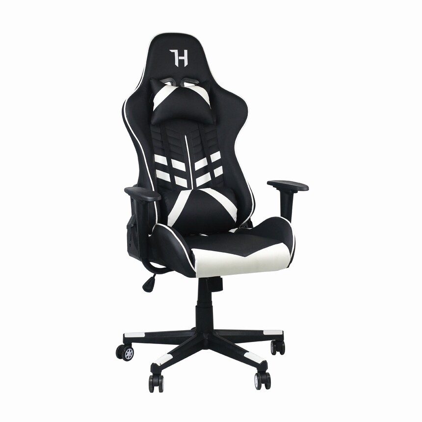 Gaming chairITEM:LT-GC002 Material:PVC+Foams+Nylon+Steel Characteristics:With headrest and lumbar support Measurements:64*64*127-135cm Maximum weight:150kg N.W:14kg G.W:15kg 40HQ:400pcs