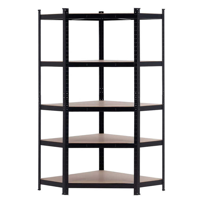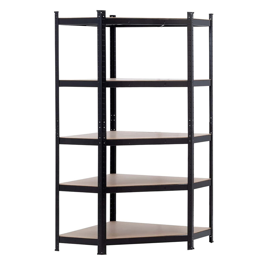 Corner iron shelfITEM:LT-50025 Material:MDF board+powder coated iron frame Dimension:90*40/70*180cm Max. Tier Capacity:175kg each tier N.W:19kg G.W:20kg 20GP:850pcs