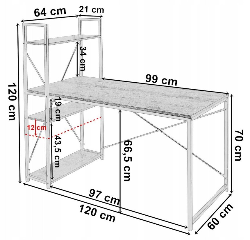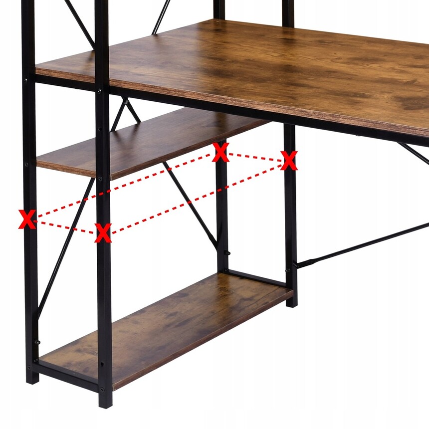 DeskITEM:LT-IF004 Material:Powder coated steel+laminated board Style:Vintage,Loft,Industrial Stable,strong frame X-shaped stabilizing brackets Maximum even shelf load:5kg Color:Black oak Dimension:120*60*120cm Dimension of metal profiles:2*2cm G.W:17kg 40HQ:1225pcs