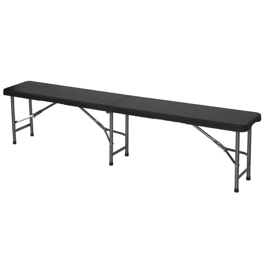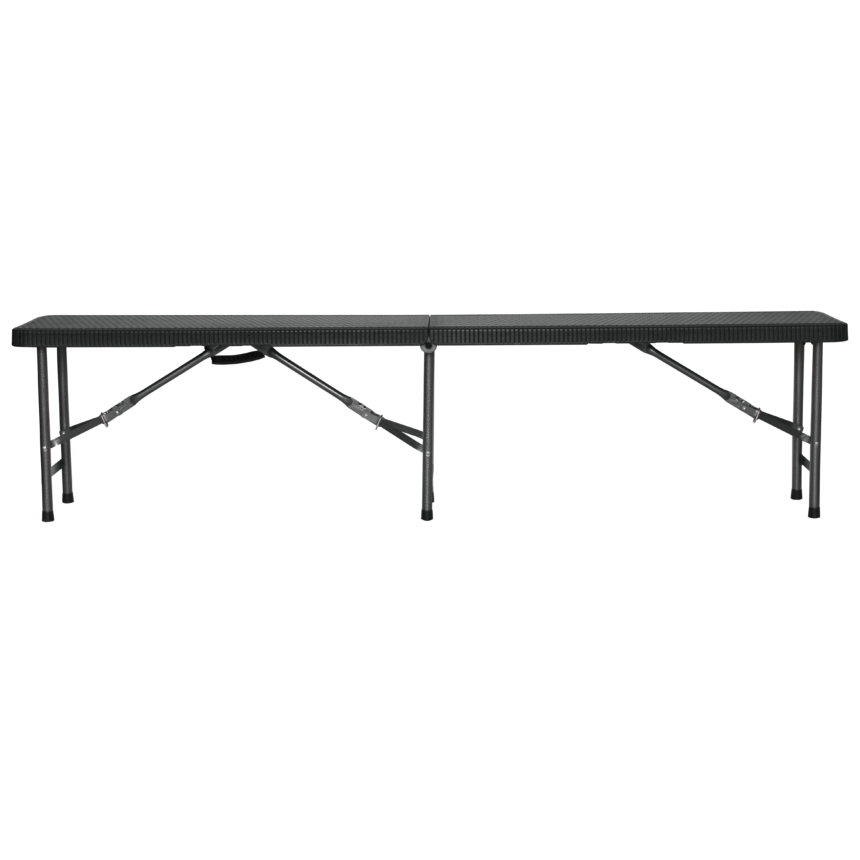 6FT Rattan plastic folding bench(Weaving rattan stool black)ITEM:LT-FB180R Material:HDPE benchtop and powder coated steel frame Overall size:180*29*43cm Tube size:19*1mm N.W:6.5kg G.W:7kg 20GP:1350pcs 40HQ:3250pcs