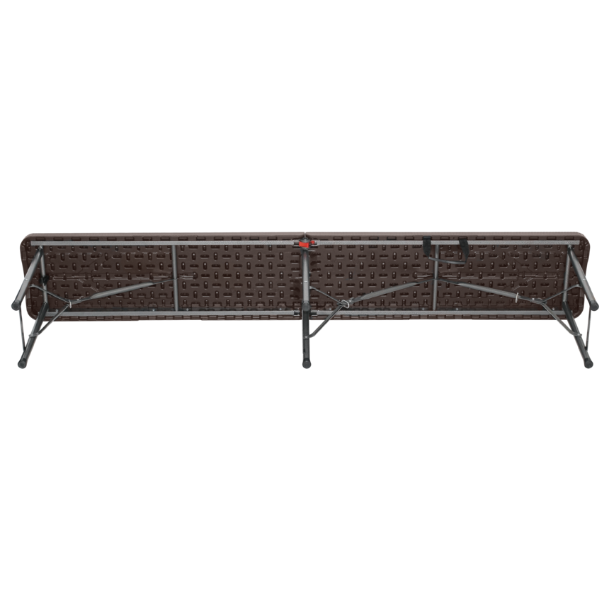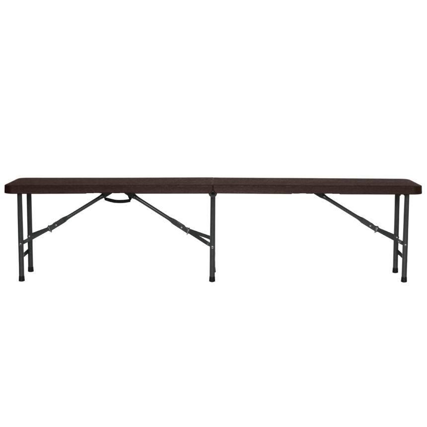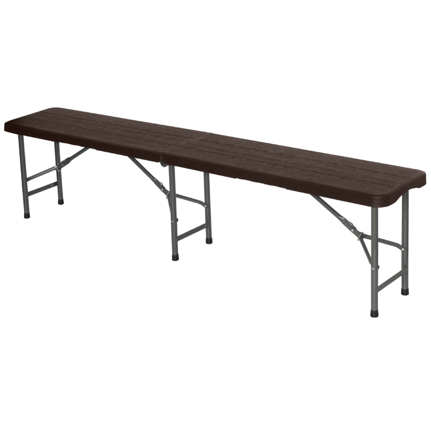 6FT Wood effect plastic folding bench(Wood grain stool brown)ITEM:LT-FB180W Material:HDPE benchtop and powder coated steel frame Overall size:180*29*43cm Tube size:19*1mm N.W:6.5kg G.W:7kg 20GP:1350pcs 40HQ:3250pcs